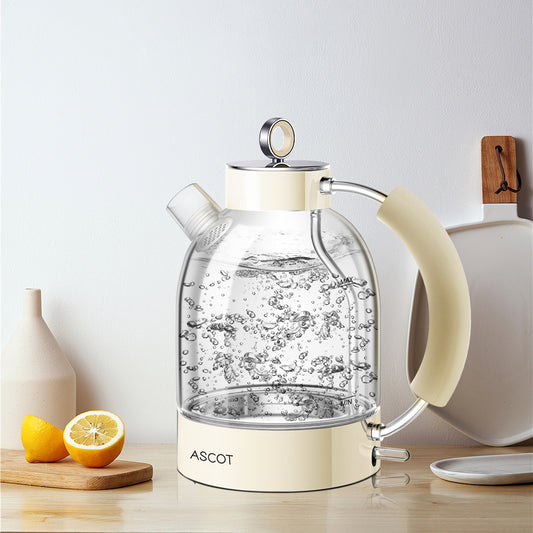 ASCOT Electric Kettle Glass Tea Kettle,1.5L(K2-Cream)