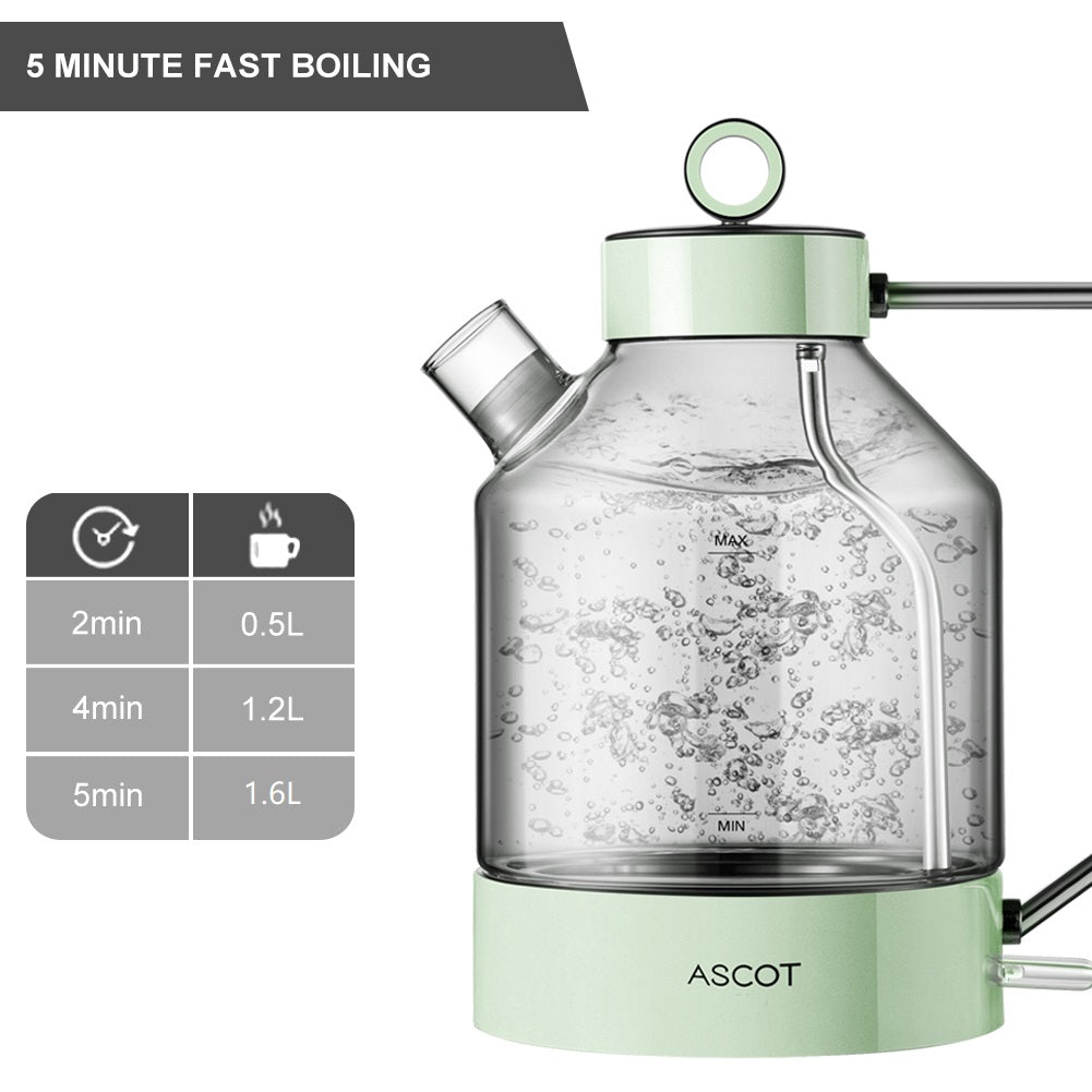 ASCOT Electric Kettle Glass Tea Kettle,1.5L(K6-Green)