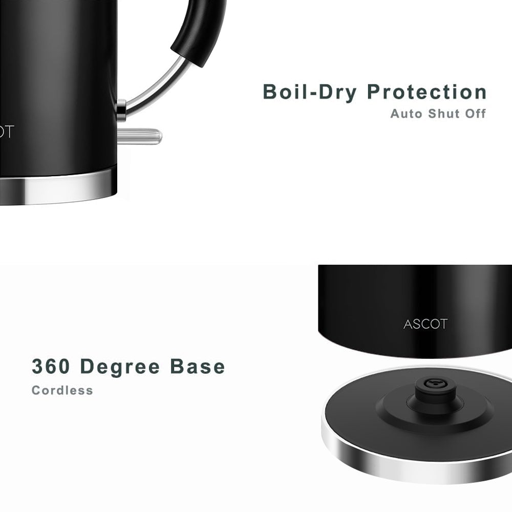 ASCOT Electric Kettle Stainless Steel Tea Kettle,1.5L(K1-Matte Black)