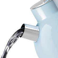 The retro kettle has a specially designed pour spout to ensure all of the water goes into the cup with fewer splashes and spills on your worktop.